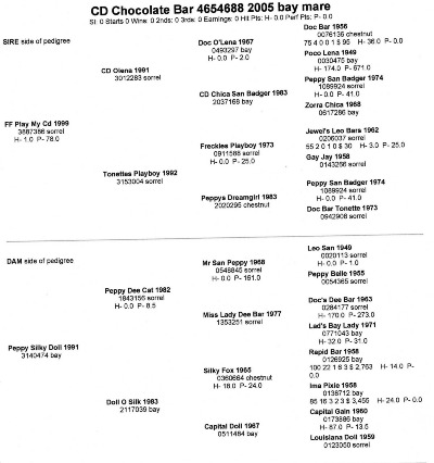 Mit Vorfahren wie Silky Fox, Ima Pixie, Custus Rastus, Capital Gain u.Flying Bob hat sie noch weitere Champions im 4-Generationen Pedigree.